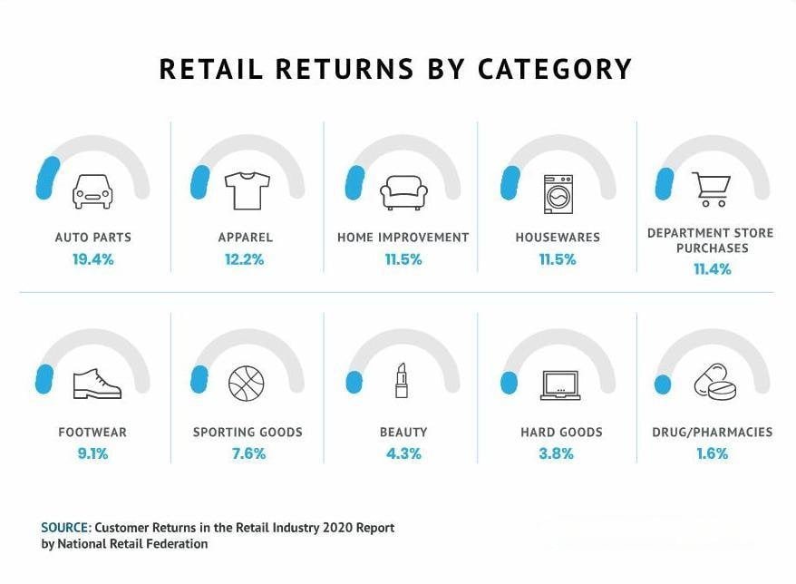 Refer to standard return rates per category (for example, apparel has a higher return rate than beauty products, 12.2% vs 4.3%).
